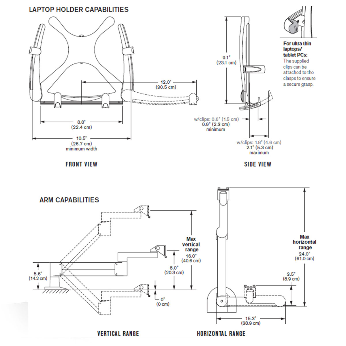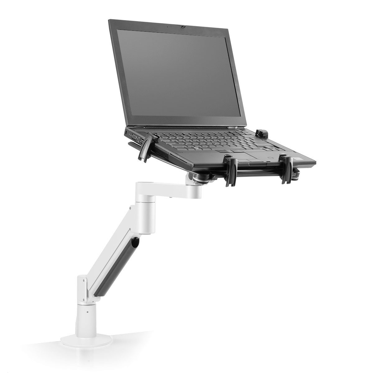 - Mounting arm floats computer above desk – simply grab and move to desired position