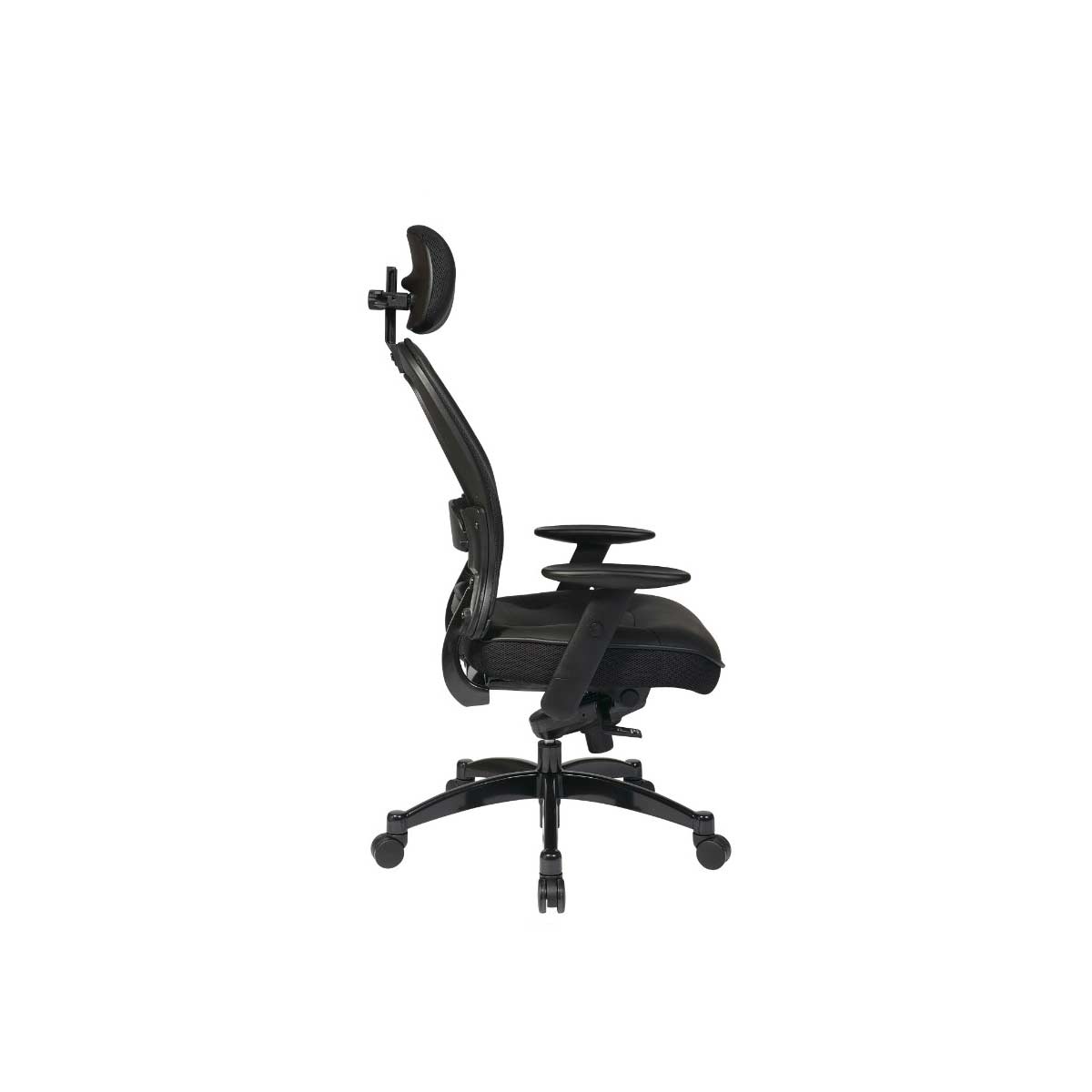 - Thick Padded Contour Top Grain Leather Seat and Breathable Mesh Back with Adjustable Lumbar Support
