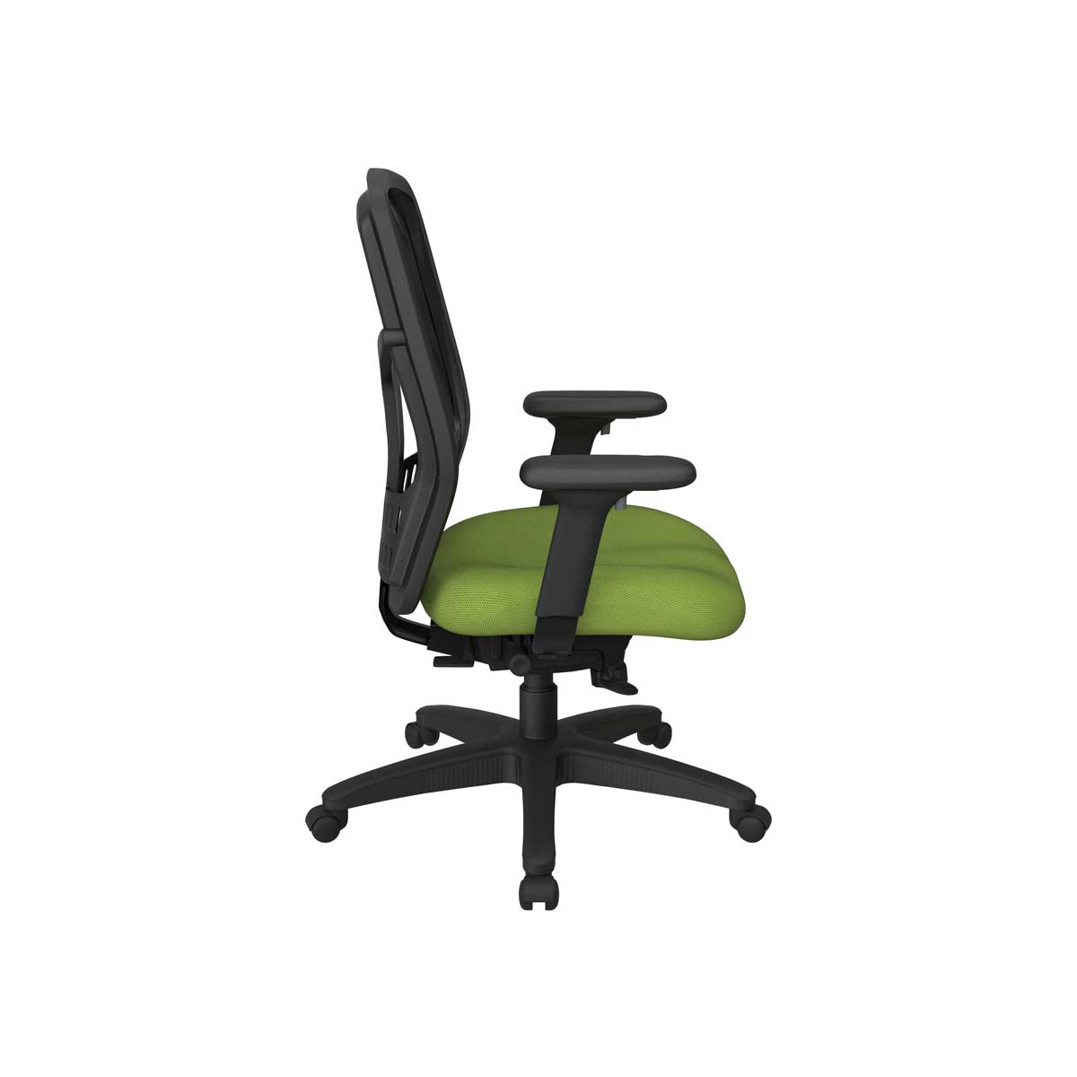 Work in comfort and style in the new ProGrid® High-Back Managers Chair. Perfect for workers who spend extended periods of time at their work stations, this chair provides comfort and support. The strong yet lightweight breathable ProGrid® Mesh back conforms to your body’s unique contours with added adjustable in lumbar support, and high quality foam FreeFlex® Mesh Saddle seat with molded foam affords for hours of cozy seating, minimizing fatigue and alleviating pressure on the spine. Designed to fit all shapes and sizes, the seat flexes and conforms to your body’s micro-movements distributing weight evenly while the one touch pressurized pneumatic seating adjustments allow you to elevate to the perfect height. The Deluxe 3-position Locking 2-to-1 synchro Tilt control with seat slider will let you recline with comfort and ease. Complete with 3 way adjustable arms with soft PU pads and a durable heavy duty nylon base with dual wheel carpet casters that provide for effortless mobility across tile and carpet floors alike.